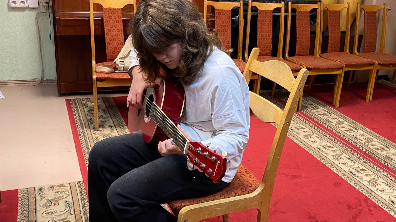Учитывая огромную пользу музыки в жизни детей, многие родители приобщают своих малышей к игре на гитаре с самого юного возраста. Почему же стоит научить ребёнка играть на гитаре? Игра на гитаре улучшает память, сосредоточенность на оттачивании навыка, улучшает концентрацию, гитара прокачивает многозадачность. При игре на гитаре необходимо координировать сразу несколько действий: читать табулатуру, брать аккорд, думать о том, какие струны соответствуют каким нотам, слушать и анализировать звуки, которые звучат в данный момент времени, держать ритм. Игра на гитаре развивает математические способности. Теория музыки основана на математических понятиях. Гаммы и аккорды — уравнения, выучив несколько аккордов, у ребёнка развивается еще и логическое мышление. Игра на гитаре улучшает физическое здоровье. Занятия на гитаре хорошо сказываются на работе мышц — руки, запястья и предплечья становятся сильнее. Исполнение мелодий на гитаре помогает уменьшить тревогу, снять напряжение и просто расслабиться.