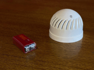 Разговор о действенности извещателя начинаем с небольшого эксперимента. К круглому прибору подносим подожжённую бумагу. Столбик дыма, направленный как раз к поверхности АПИ, заставляет его громко верещать. Он чувствителен даже к незначительному задымлению в помещении, что способствует быстрому обнаружению возгорания на ранней стадии его развития. При появлении дыма он подает мощный звуковой сигнал, который способен оповестить и даже разбудить спящего человека, тем самым дает возможность принять меры по защите себя, семьи, имущества.