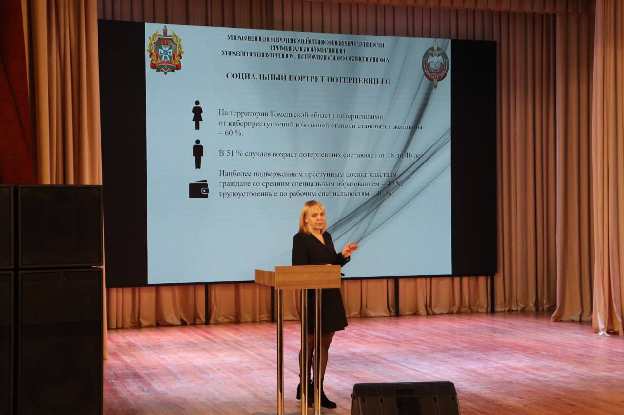 Старший оперуполномоченный по особо важным делам УПК УВД Гомельского облисполкома Юлия Николаевна Дудкина посвятила выступление правилам цифровой гигиены. На конкретных примерах разобрали схемы мошенников, методы социальной инженерии и способы защиты персональных данных. Главный совет: критическое мышление и бдительность — лучшие антивирусы.