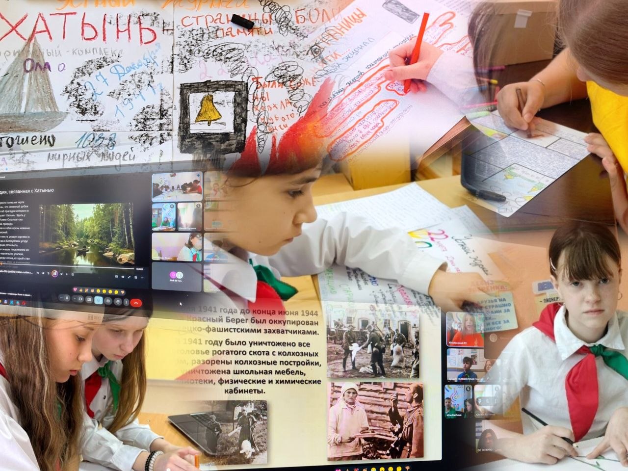 Юные пионеры рассказали о сожженных деревнях своих регионов. У каждой истории — свое лицо, своя боль.