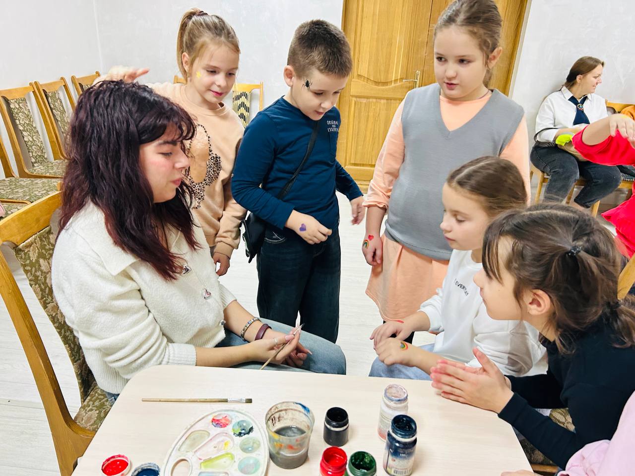 Ребята приняли участие в увлекательном мастер-классе «Веселый урожай», где каждый смог сделать яркую тыквочку. У всех желающих была возможность украсить себя красочным аквагримом.