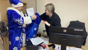 В этот день в коридорах Дворца царила настоящая сказка: Дед Мороз и Снегурочка вместе со своими весёлыми эльфами разносили сладкие подарки, даря улыбки и праздничное настроение.