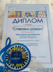 Образцовый хор «Рапсодия» (Средняя школа №30 г.Гомеля) — дипломант I степени в номинации «Академический хор», возрастная категория 14–18 лет.