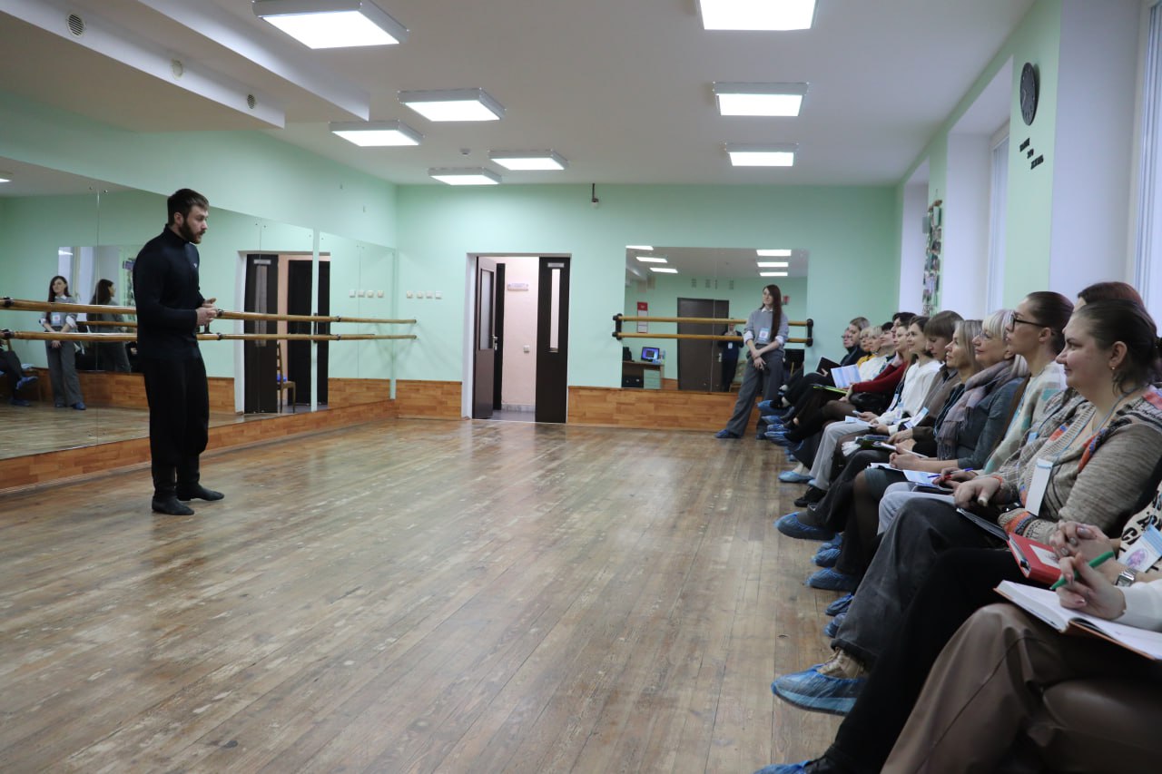 Мастер-класс “Как рождается танец”. Педагогический старт задал мастер-класс по созданию хореографической композиции, который провел Мельников Е.Г., преподаватель Гомельского колледжа искусств им.Н.Ф.Соколовского.